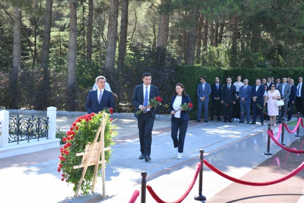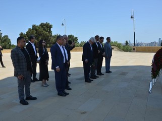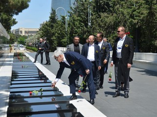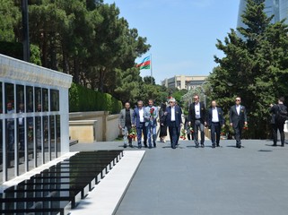 Ardından Şəhidlər xiyabanına gedən nümayəndə heyəti Azərbaycanın müstəqilliyi və ərazi bütövlüyü uğrunda canlarından keçmiş qəhrəman Vətən övladlarının məzarlarını ziyarət edib, “Əbədi məşəl” abidəsinin önünə əklil qoyub.