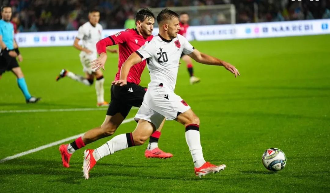 Tiflisdə Çexiyaya 4:1, Tiranada Albaniyaya 2:1 hesabıyla qalib gələn Gürcüstan yığması oktyabrın 11-də Poznanda Ukraynaya minimal hesabla uduzmuşdu. Villi Sanyolun komandası bu dəfə evdə uğursuzluğa düçar oldu. Halbuki qafqazlılar Albaniya ilə matçda çox yaxşı təsir bağışladılar. Sanyol Ukraynaya məğlubiyyətdən sonra start heyətini böyük ölçüdə hücumameyilli oyunçulardan qurmağı lazım bilmişdi. Baş məşqçinin belə seçimi ilk dəqiqələrdən bəhrə verə bilərdi, lakin Zivzivadze topu bir neçə metrdən qapının üstündən tribunalara göndərdi. İlk dəqiqələrdən rəqibin həmlələrini zərərsizləşdirməklə məşğul olan albanlar ara-sıra Mamardaşvilini əks-hücumlarla işə qoşurdular. Ev sahiblərinin qapıçısı ilk hissədə rəqibin hesabı açmaq üçün etdiyi cəhdlərin qarşısını alsa da, fasilədən az sonra topu qapısında gördü: “İnter”in yarımmüdafiəçisi Asllani cərimə meydançasının kənarından endirdiyi zərbə ilə hesabı açdı. Bayrami az sonra meydan sahiblərinə ikinci şoku yaşada bilərdi. Onun növbəti qolu vurmaması gürcüstanlıların qalan vaxtda hücumları daha da gücləndirməsi ilə müşayiət olundu. Lakin Kvaratsxeliya, Zivzivadze və Mikautadze imkanlardan yararlana bilmədilər. Sanyolun komandası ardıcıl ikinci məğlubiyyətlə liderliyi itirdi.