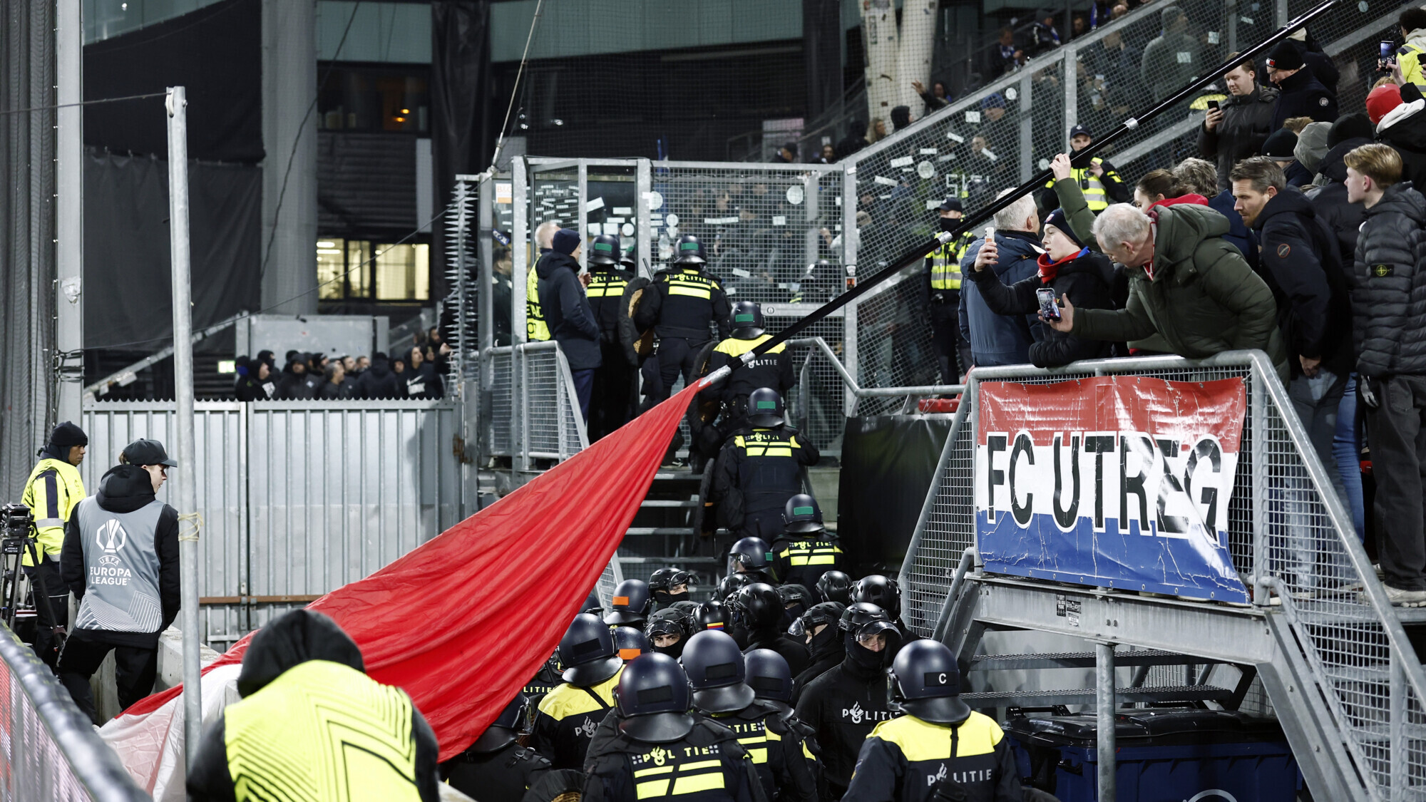 "Football-plus.az" xəbər verir ki, buna azarkeşlər səbəbkar olublar. “Utrext” – “Genk” oyununun startı təxirə salınıb. Niderlandın Utrext şəhərindəki “Qalgenvaard” stadionunda keçirilən oyunn Bakı vaxtı ilə saat 00.00-da başlamalı idi. Lakin tribunalardakı iğtişaşlar səbəbindən matçın startı 50 dəqiqə gecikib.